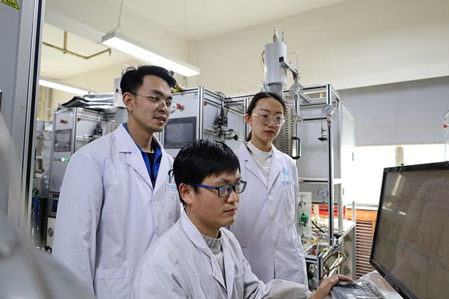 實驗室研究員崔新江告訴半月談記者,傳統(tǒng)乙醇氧化法制乙醛會產(chǎn)生污染,新研發(fā)的技術(shù)路線可以讓煤基乙醇直接無氧脫氫制成乙醛,既簡化工藝過程,又實現(xiàn)無三廢排放。編輯:徐寧