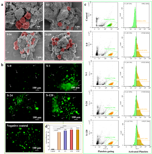 因此,通過研究紅細(xì)胞在混維凹凸棒石黏土表面黏附和血小板激活情況,結(jié)合黏附紅細(xì)胞數(shù)量、形態(tài)和血小板活化率,進(jìn)一步證實(shí)了S-1具有最佳的止血性能。