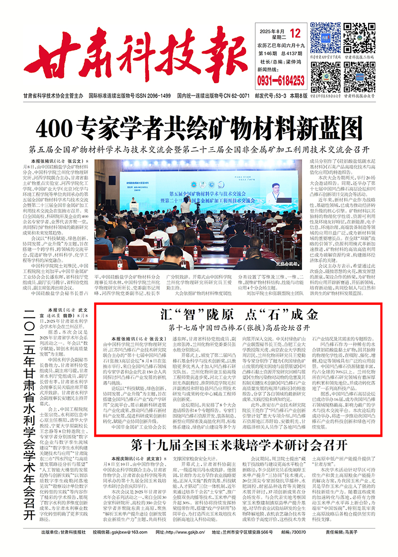 【甘肅科技報(bào)】匯“智”隴原 點(diǎn)“石”成金 第十七屆中國凹凸棒石(張掖)高層論壇召開