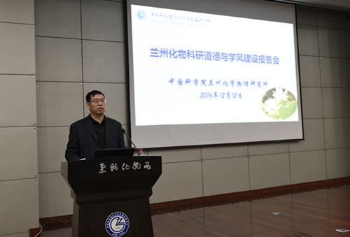 12月12日上午,中國(guó)科學(xué)院院士、中國(guó)科學(xué)院蘭州化學(xué)物理研究所學(xué)術(shù)委員會(huì)副主任、學(xué)位委員會(huì)主席劉維民研究員應(yīng)邀為蘭州化物所全所青年職工和研究生作了題為《科學(xué)研究與技術(shù)創(chuàng)新——學(xué)習(xí)、交流與踐行》的專題報(bào)告。報(bào)告會(huì)由蘭州化物所副所長(zhǎng)、所科研道德與學(xué)風(fēng)建設(shè)委員會(huì)副主任師彥平主持。所紀(jì)委書(shū)記、副所長(zhǎng)、科研道德與學(xué)風(fēng)建設(shè)委員會(huì)辦公室主任張長(zhǎng)春,研究生導(dǎo)師和全所青年職工、研究生等近300人參加了報(bào)告會(huì)。