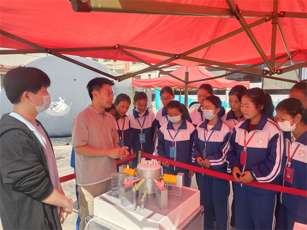 中國科學(xué)院近代物理研究所自幫扶和政縣以來,高度重視推進(jìn)教育幫扶、助力鄉(xiāng)村振興工作,近年來,在扎實(shí)開展產(chǎn)業(yè)幫扶、消費(fèi)幫扶的同時(shí),通過組織結(jié)對(duì)關(guān)愛、科普活動(dòng)進(jìn)村入校、邀請(qǐng)和政縣優(yōu)秀中小學(xué)生赴蘭州實(shí)地參觀研究所大科學(xué)裝置、贈(zèng)送圖書、開展“微心愿”認(rèn)領(lǐng)等形式多樣的活動(dòng),用心用情用力開展教育幫扶,認(rèn)真貫徹落實(shí)習(xí)近平總書記關(guān)于教育幫扶系列重要講話精神。此次活動(dòng),近代物理研究所黨委辦公室與教育處協(xié)同精心組織,遴選10名研究生擔(dān)任科普志愿者,既是為中學(xué)生們帶來生動(dòng)有趣講解,也是發(fā)揮他們自身一路求學(xué)奮進(jìn)的示范引領(lǐng)作用,激勵(lì)中學(xué)生們志存高遠(yuǎn),點(diǎn)燃?jí)粝耄佑霉W(xué)習(xí),將來造福家鄉(xiāng)。