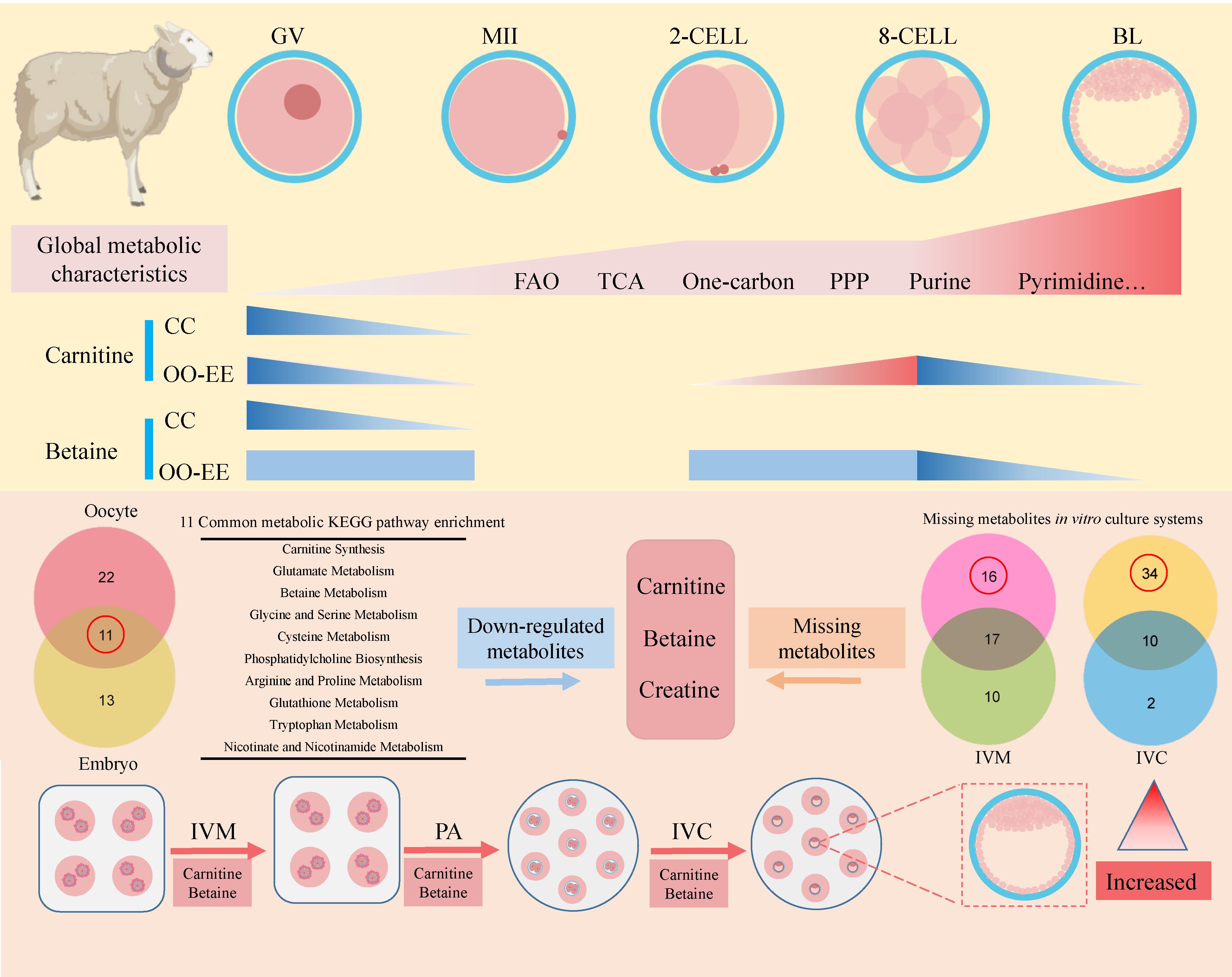 論文摘要圖:綿羊卵母細(xì)胞與早期胚胎的代謝特征及其體外發(fā)育關(guān)鍵代謝物的挖掘