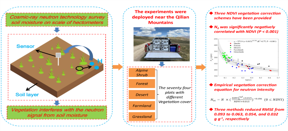 中國(guó)科學(xué)院西北生態(tài)環(huán)境資源研究院趙文智和張勇勇研究團(tuán)隊(duì)通過(guò)野外考察、定位觀測(cè)和模型分析等手段,從樣地—樣線—區(qū)域多尺度,對(duì)祁連山、河西走廊近地表宇宙射線中子強(qiáng)度特征、非土壤水氫源類型和中尺度土壤水分時(shí)空格局等進(jìn)行了研究。