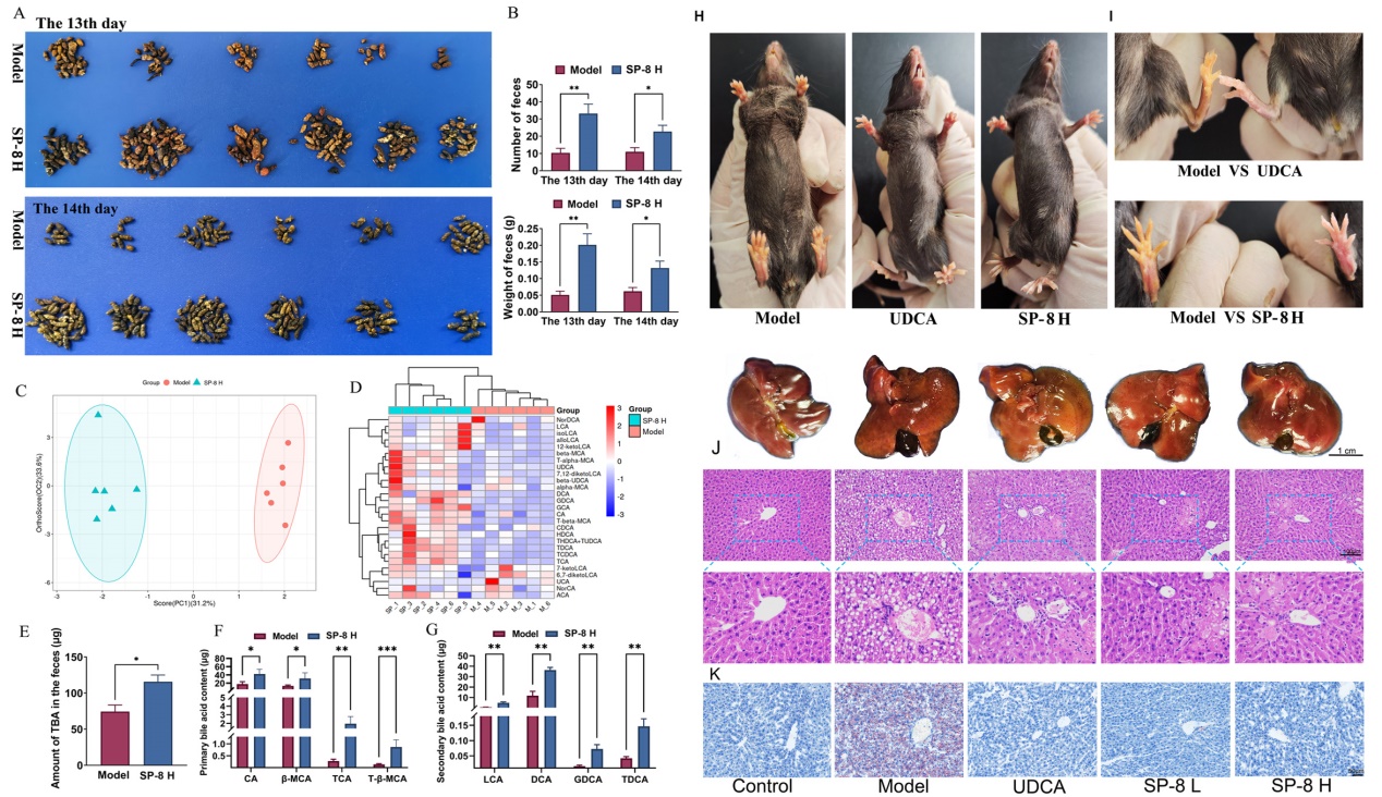 膽汁淤積性肝?。–LD)是一種復(fù)雜的肝膽疾病,由肝細(xì)胞水平的膽汁形成缺陷或膽管水平的膽汁分泌和流動受損引起。根據(jù)膽汁淤積的不同部位,可分為肝內(nèi)膽汁淤積和肝外膽汁淤積。其共同特點(diǎn)是肝細(xì)胞內(nèi)膽汁酸(BAs)等有毒物質(zhì)的過度積累引起膽汁淤積性肝損傷。持續(xù)性膽汁淤積可進(jìn)一步誘導(dǎo)氧化應(yīng)激和炎癥信號反應(yīng),最終導(dǎo)致肝纖維化或肝細(xì)胞壞死。近年來,全球膽汁淤積癥的發(fā)病率逐年上升,尤其是在兒童、青少年和婦女中高發(fā)。目前,我國仍然缺少具有自主知識產(chǎn)權(quán)的高效的治療CLD的藥物。臨床上治療一直依賴美國FDA認(rèn)證的熊去氧膽酸和奧貝膽酸,但它們的有效率不足50%,副作用明顯且價格昂貴。