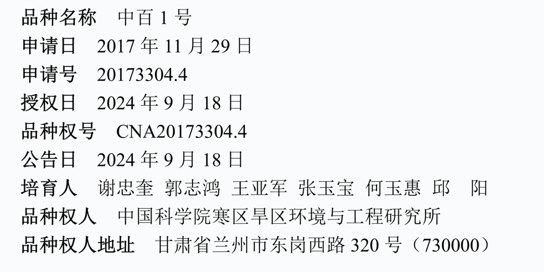 近日,中國科學院西北生態(tài)環(huán)境資源研究院蘭州生態(tài)農業(yè)試驗研究站(簡稱“蘭州農業(yè)站”)謝忠奎研究員團隊自主選育的“中百1號”蘭州百合新品種上榜農業(yè)農村部2024年第826號授予植物新品種權名單。這是我國首個被授予植物新品種權的優(yōu)質高產食用百合品種,同時也是西北研究院首次獲植物品種權授權。
