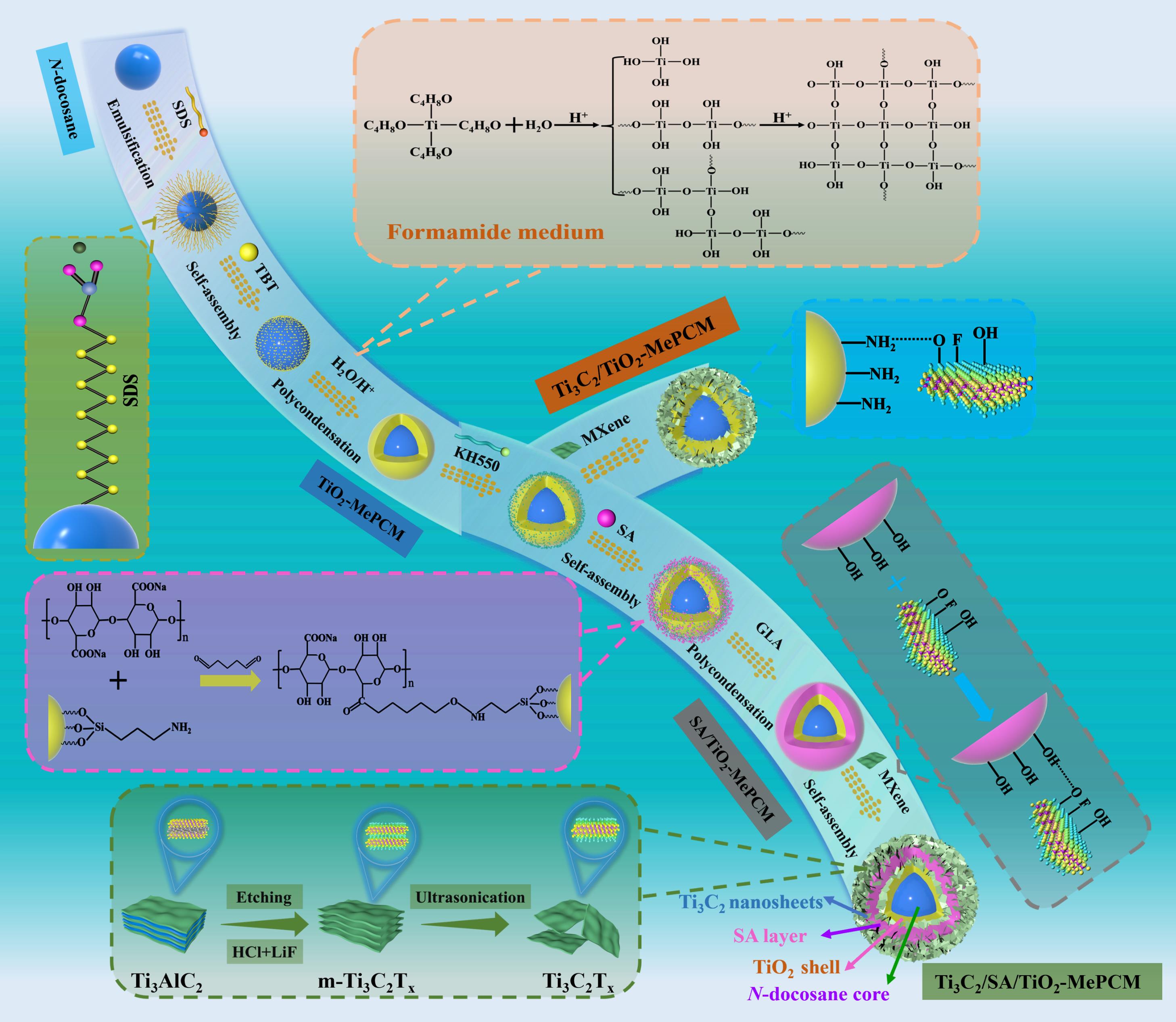 圖1. Ti3C2Tx修飾相變微膠囊的合成策略及反應(yīng)機理示意圖