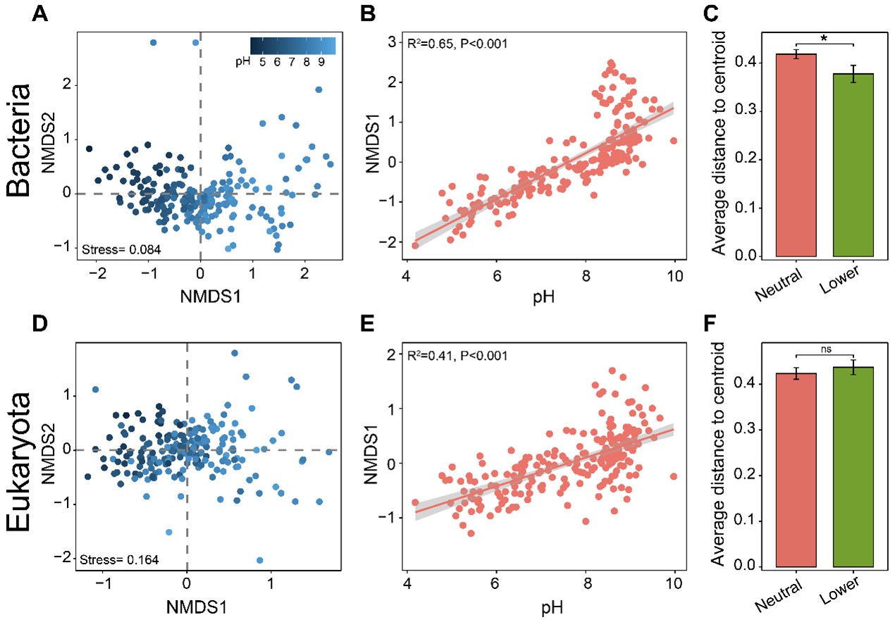 近日,中國科學(xué)院西北生態(tài)環(huán)境資源研究院李玉強研究員團(tuán)隊受Global Change Biology期刊邀請發(fā)表研究成果,利用多元交叉驗證(NMDS+PLS-PM+PERMDISP)方法,系統(tǒng)揭示了土壤酸化過程中細(xì)菌和真核生物β-多樣性的解耦規(guī)律,及細(xì)菌和真核生物群落組成對土壤酸化的響應(yīng)差異,為理解土壤生態(tài)系統(tǒng)穩(wěn)定性提供了新視角。