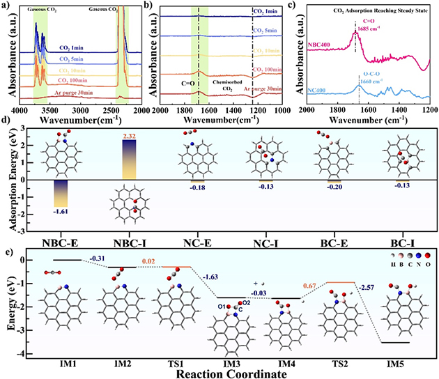 圖2.理論計算結(jié)合原位紅外揭示N-B位點(diǎn)活化轉(zhuǎn)化CO2新機(jī)制