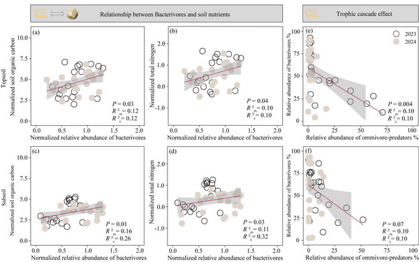 圖2?食細(xì)菌線蟲與土壤養(yǎng)分的關(guān)系,食菌線蟲與雜食性-捕食性線蟲的關(guān)系
