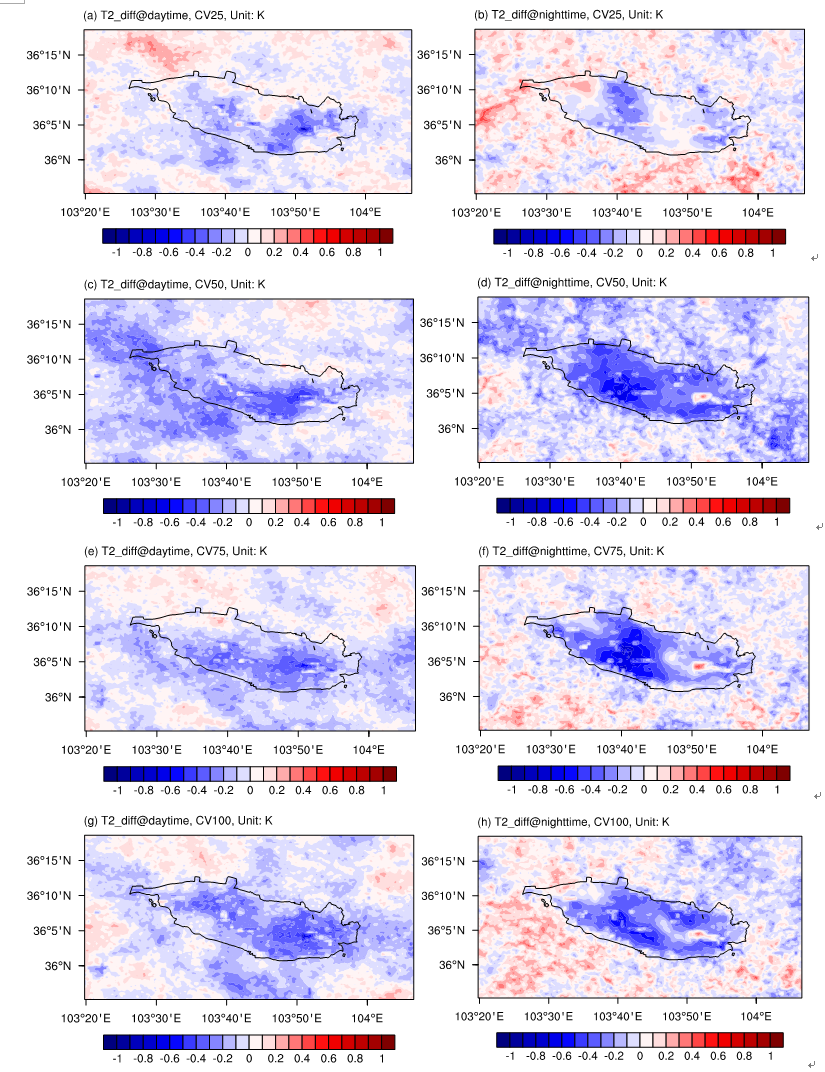 中國(guó)科學(xué)院西北生態(tài)環(huán)境資源研究院高曉清研究員團(tuán)隊(duì)聚焦我國(guó)典型復(fù)雜地形城市——蘭州,在熱浪事件背景下,利用國(guó)際先進(jìn)的中尺度氣象模型(WRF)并耦合城市建筑效應(yīng)參數(shù)化與建筑能耗模型(BEP+BEM),精細(xì)模擬了不同覆蓋率(25%、50%、75%、100%)下的屋頂光伏對(duì)城市熱環(huán)境的多維度影響。