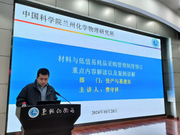 資產(chǎn)與基建處處長陳建介紹了新修訂的資產(chǎn)采購與管理相關(guān)制度,陳明忠作了題為“固定資產(chǎn)管理及設(shè)備采購制度重點內(nèi)容解讀及相關(guān)案例分享”的報告,分析了研究所資產(chǎn)管理形勢,結(jié)合案例解讀了新修訂的固定資產(chǎn)采購制度。費守祥作了題為“料與低值易耗品采購管理制度修訂重點內(nèi)容解讀以及案例講解”的報告,介紹了材料與低值易耗品采購、稀貴金屬和貴重試劑、易制毒化學(xué)品和易制爆化學(xué)品管理,分享了相關(guān)案例。