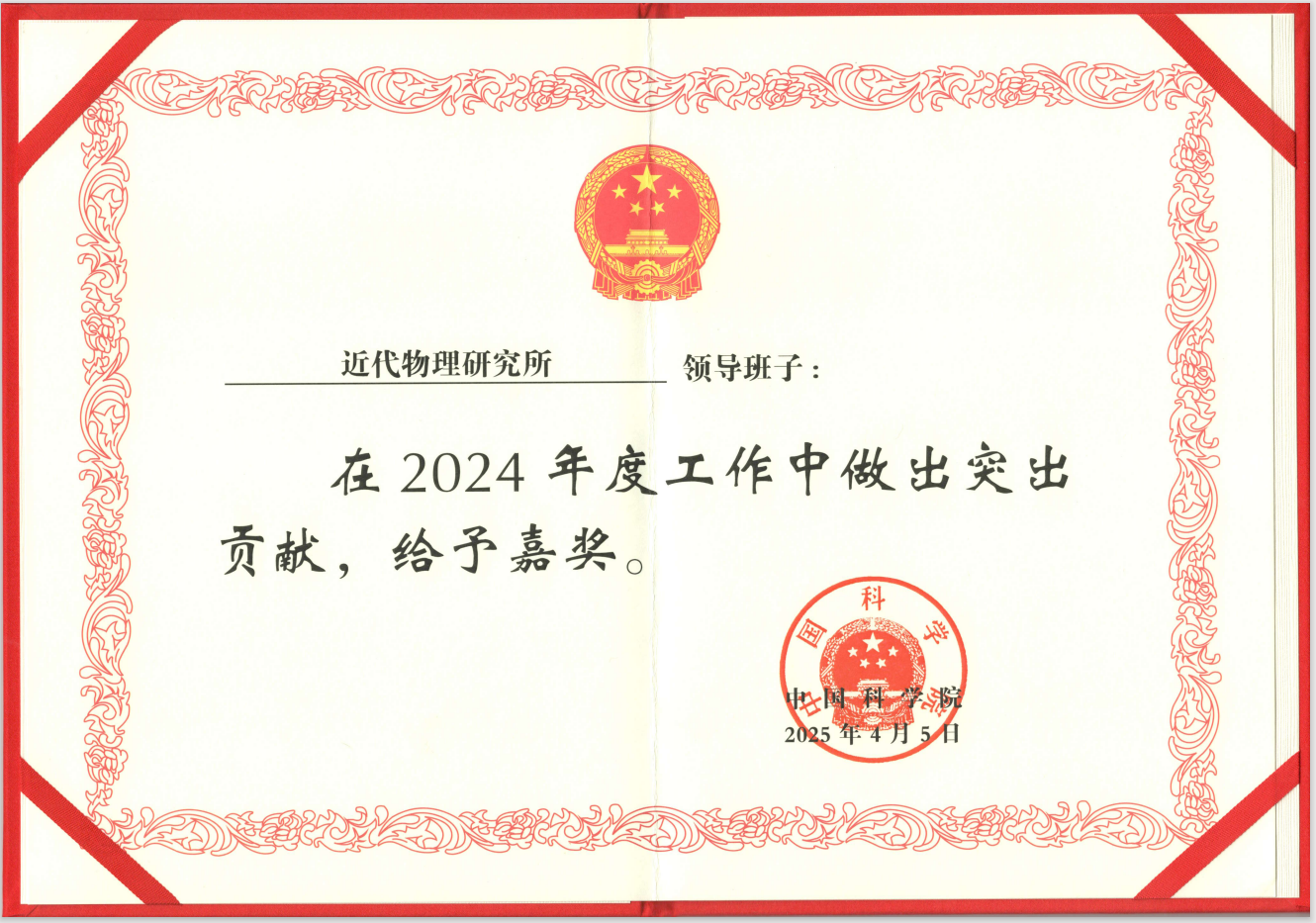近代物理所領(lǐng)導(dǎo)班子榮獲中國(guó)科學(xué)院嘉獎(jiǎng)