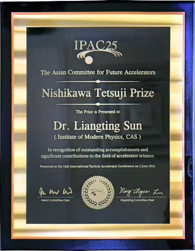 近代物理所孫良亭研究員榮獲2025年度國(guó)際粒子加速器獎(jiǎng)“西川哲治獎(jiǎng)”(Nishikawa Tetsuji Prize)