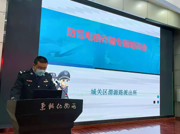 會議邀請?zhí)m州市城關(guān)公安分局渭源路派出所張晟警官作了如何防范電信詐騙的報告,講解了電信詐騙的發(fā)展史、詐騙手段及應對措施,用實際案例進行警示教育,使大家進一步學習了預防電信網(wǎng)絡詐騙知識,提高了對電信詐騙犯罪的識別和應對能力。