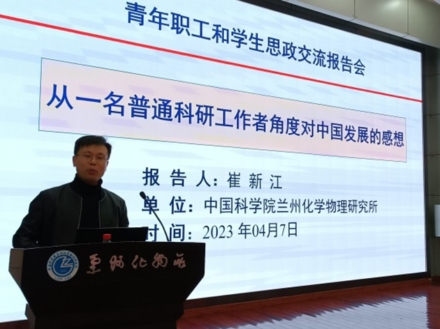 為深入貫徹落實(shí)習(xí)近平新時(shí)代中國(guó)特色社會(huì)主義思想和黨的二十大精神,進(jìn)一步加強(qiáng)青年職工和學(xué)生思想政治教育,4月7日,中國(guó)科學(xué)院蘭州化學(xué)物理研究所舉辦了青年職工和學(xué)生思想政治教育輔導(dǎo)報(bào)告會(huì),邀請(qǐng)研究所兩位青年科研骨干作報(bào)告,青年職工和學(xué)生360余人參加報(bào)告會(huì)。