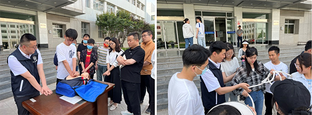 培訓結(jié)束后,在戶外開展了突發(fā)事件演練。教官逐一演示了心肺復蘇、海姆立克急救法和逃生自救繩索打結(jié),介紹了每個步驟的操作要點,參會人員親身操作體驗,提升了應急自救、互救技能。