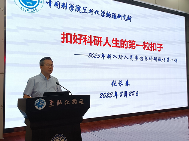 張長春作了題為“扣好科研人生的第一??圩印?023年新入所人員廉潔與科研誠信第一課”的專題報告。傳達了習近平總書記和黨中央關于科技創(chuàng)新和全面從嚴治黨的精神和要求,帶領學習了中國科學院加強科研誠信和學風建設的要求,通報了近年來科教領域經(jīng)濟活動違紀違規(guī)和科研不端的典型案例,對青年職工和研究生提出了貫徹落實的具體要求。