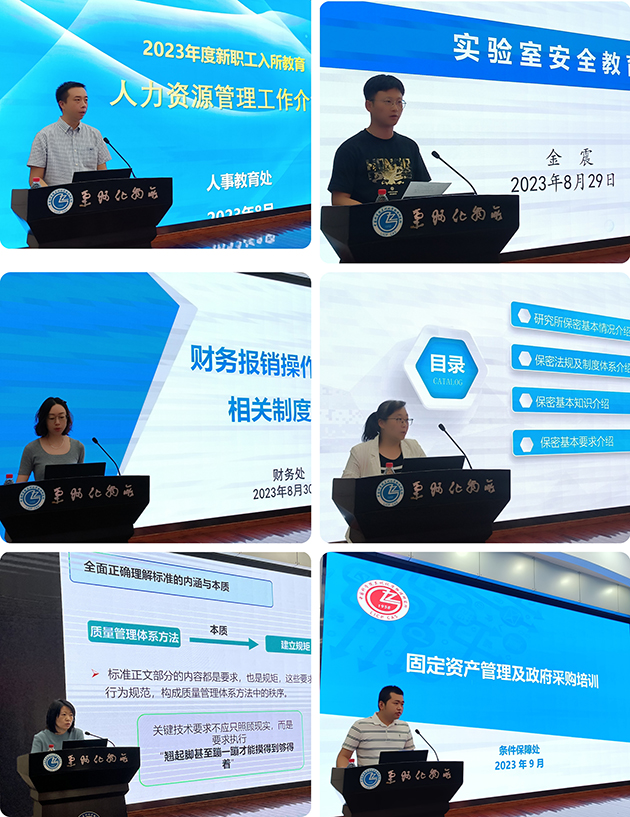 此次教育培訓分為業(yè)務培訓和專題培訓,業(yè)務培訓主要由黨委辦公室、所務辦公室、科研與規(guī)劃處、人事教育處、財務處、條件保障處、公共技術中心等分別就黨建、檔案管理、網(wǎng)絡安全、論文發(fā)表審查、人事人才、財務制度與報銷管理流程、固定資產(chǎn)管理與政府采購、公共設施使用與行為規(guī)范、公共平臺建設與運維等方面進行了介紹。專題培訓主要包括實驗室安全教育、保密教育、質(zhì)量管理體系建設與運行、館藏文獻與數(shù)據(jù)庫應用等。