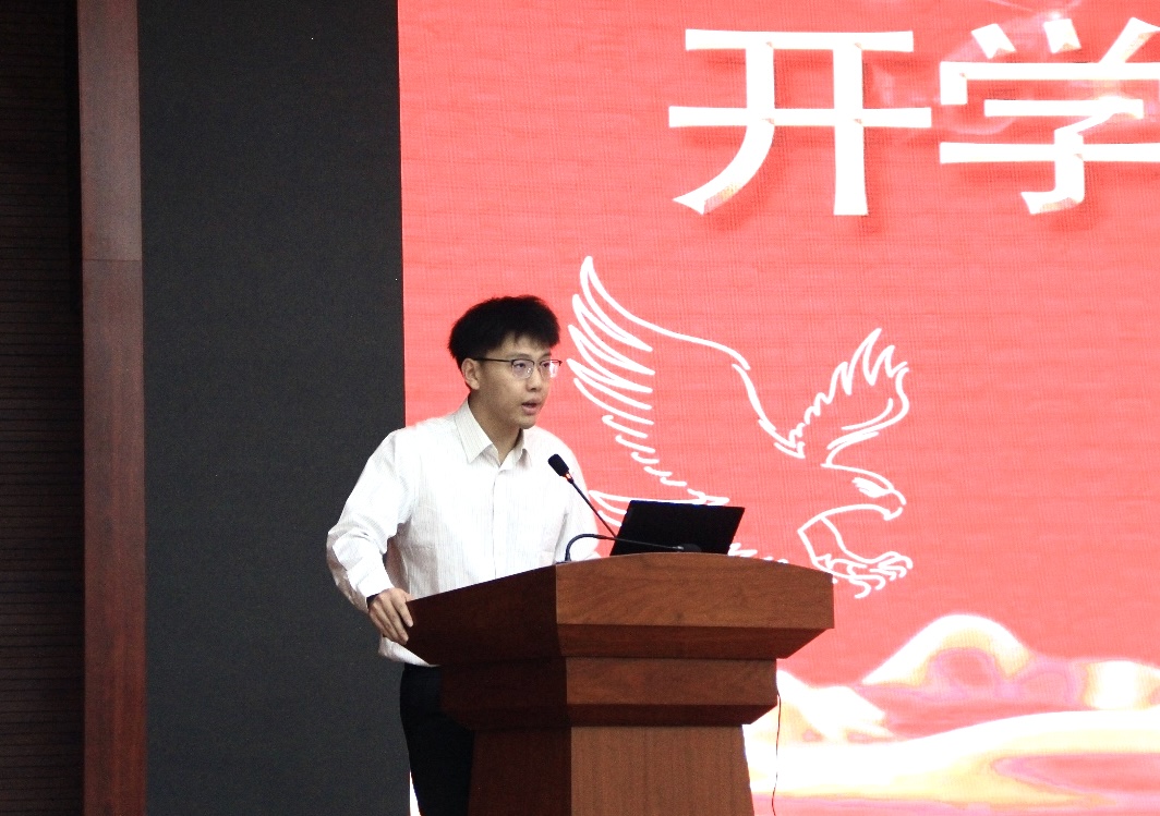 2022級(jí)碩士研究生韋楓代表在讀學(xué)生發(fā)言。他對(duì)老師們的辛勤付出表示感謝,并分享了自己的學(xué)習(xí)感悟,認(rèn)為在求學(xué)生涯中應(yīng)砥礪奮進(jìn),不忘初心,不負(fù)韶華,遇見更好的自己!