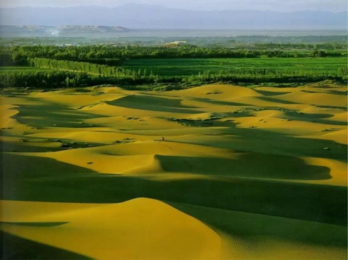 現(xiàn)實(shí)中,能夠孕育新生命的綠洲具有生態(tài)系統(tǒng)的脆弱和易變等特性。歷史上各種原因造成的水源枯竭、河水?dāng)嗔?、土地沙漠化及土壤鹽漬化、植被毀滅,往往導(dǎo)致綠洲遷移。我國(guó)西北地區(qū)5%左右的綠洲供養(yǎng)著95%的干旱區(qū)人口,綠洲的穩(wěn)定可持續(xù)發(fā)展非常重要?!?/p>