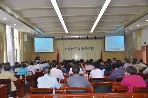 5月31日上午,應(yīng)蘭州分院分黨組邀請(qǐng),廣州分院分黨組“兩學(xué)一做”學(xué)習(xí)教育巡講團(tuán)一行三人來(lái)蘭作報(bào)告。蘭州地區(qū)院屬6個(gè)單位的所長(zhǎng)、書(shū)記、副所長(zhǎng)、副書(shū)記16人,黨委、紀(jì)委委員,中層管理骨干,研究室、實(shí)驗(yàn)室、中心主任、課題組長(zhǎng)等科研骨干,黨支部書(shū)記與離退休黨員代表,以及分院機(jī)關(guān)全體干部共100余人參加了報(bào)告會(huì)。報(bào)告會(huì)由蘭州分院分黨組書(shū)記、副院長(zhǎng)謝銘主持。