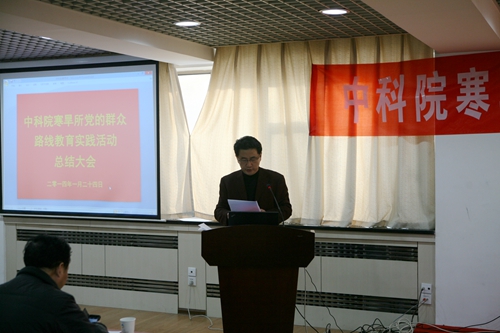 之后,寒旱所黨委書記、副所長呂世華作了寒旱所黨的群眾路線教育實(shí)踐活動總結(jié)報(bào)告。呂世華介紹了寒旱所群眾路線教育實(shí)踐活動基本情況、主要做法、取得成效。寒旱所教育實(shí)踐活動自2013年7月全面啟動以來,所黨委認(rèn)真深入學(xué)習(xí)中央和中科院的精神,按照中央“照鏡子、正衣冠、洗洗澡、治治病”的黨的群眾路線教育實(shí)踐活動的總體要求,圍繞中央八項(xiàng)規(guī)定、院“12項(xiàng)要求”和反對“四風(fēng)”精神,通過學(xué)習(xí)教育、聽取意見,查擺問題、開展批評,整改落實(shí)、建章立制環(huán)節(jié),結(jié)合研究所的工作實(shí)際, 扎實(shí)、有序、高質(zhì)量地推進(jìn)了黨的群眾路線教育實(shí)踐活動。通過教育實(shí)踐活動,進(jìn)一步堅(jiān)定了理想信念、明確了創(chuàng)新責(zé)任,堅(jiān)定了“創(chuàng)新為民”宗旨,進(jìn)一步促進(jìn)了作風(fēng)轉(zhuǎn)變、提升服務(wù)能力,強(qiáng)化了“務(wù)實(shí)求真”作風(fēng),進(jìn)一步加強(qiáng)了科研管理和廉潔從業(yè)風(fēng)險(xiǎn)防控體系建設(shè),強(qiáng)化了制度建設(shè),初步形成踐行黨的群眾路線的長效機(jī)制